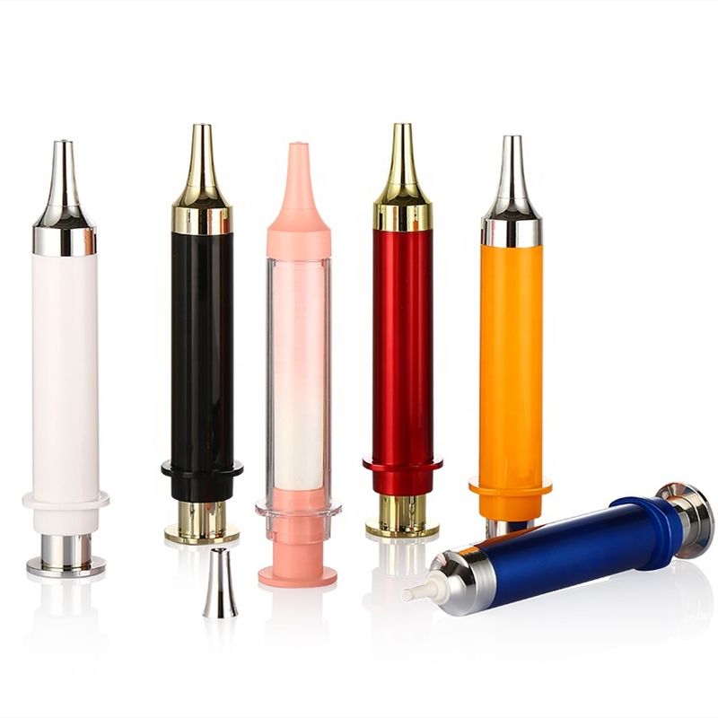Factory price syringe-shaped airless pump bottle for teeth whitening gel, serum, and other cosmetic liquids.